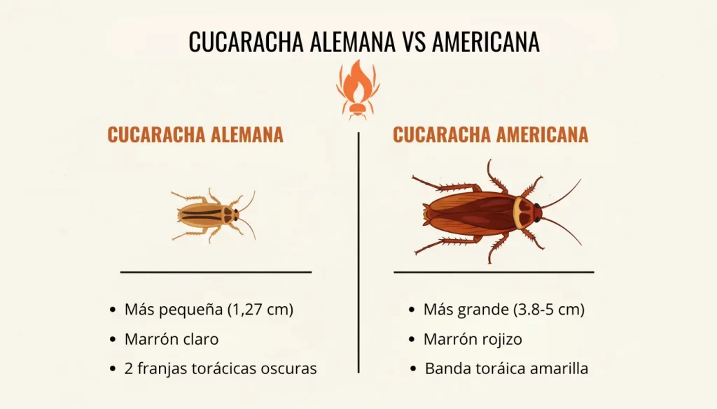 Las cucarachas americanas producen excrementos más grandes y cilíndricos, mientras que las alemanas dejan rastros más finos y granulares. Ambos tipos son evidencia inequívoca de actividad reciente.